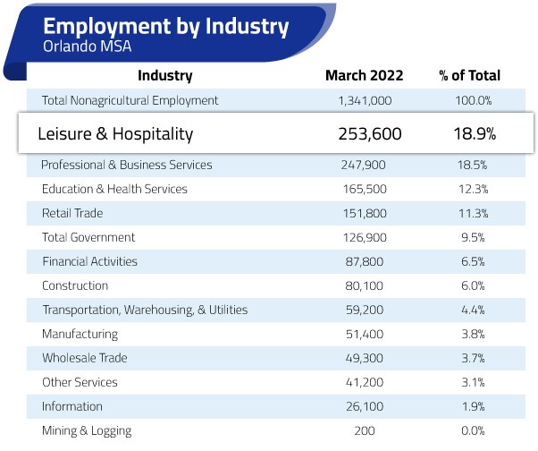 According to Florida's Strategic Plan for Economic Development 2018-2023, Florida's greatest existing strength is tourism, business, and healthcare. These industries are helping to expand Florida's economy. According to the Orlando Economic Partnership, hospitality, business, and healthcare have been Orlando's traditional industries. Industries are projected to always have a high demand for jobs.