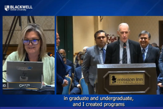 El equipo de Blackwell Global University sustentando el proyecto ante la Florida Department of Education Commission for Independent Education.